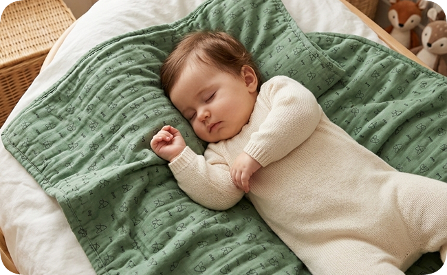 Our baby bedding is thoughtfully crafted from up to 100% premium organic cotton, featuring a sustainable, recycled polyester wadding for gentle support. Naturally hypoallergenic and more breathable than conventional cotton, our moisturewicking fabrics help regulate your baby’s temperature throughout the night. Made with care for lasting comfort, our bedding ensures a safer, deeper sleep.